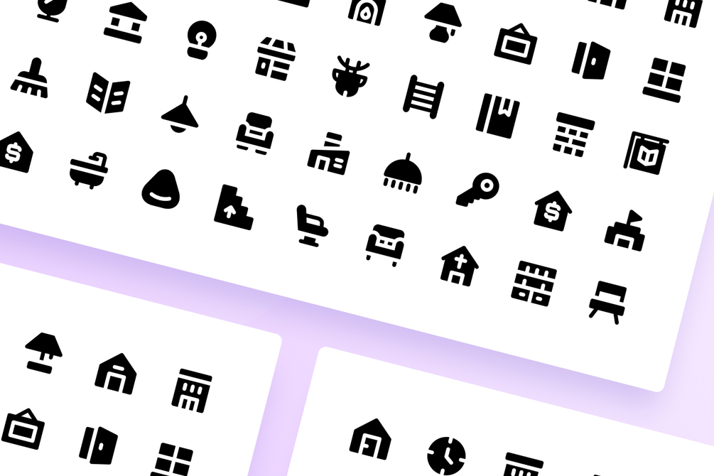 Home Icon Glyph Style Icon Set consists of 50 icons with a 32x32 px grid.