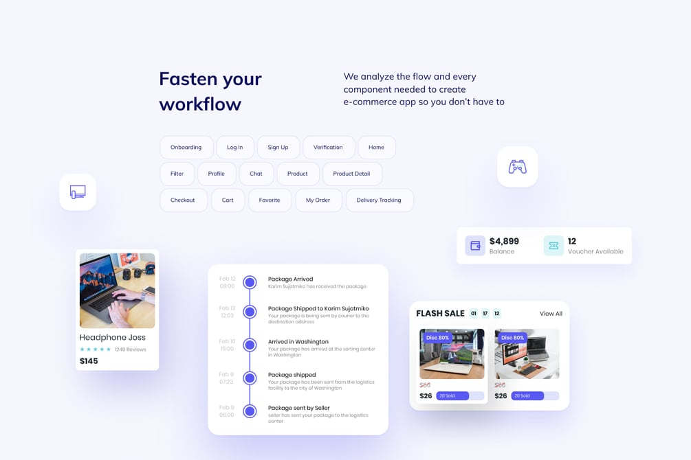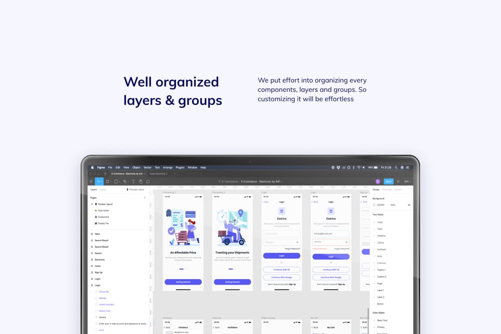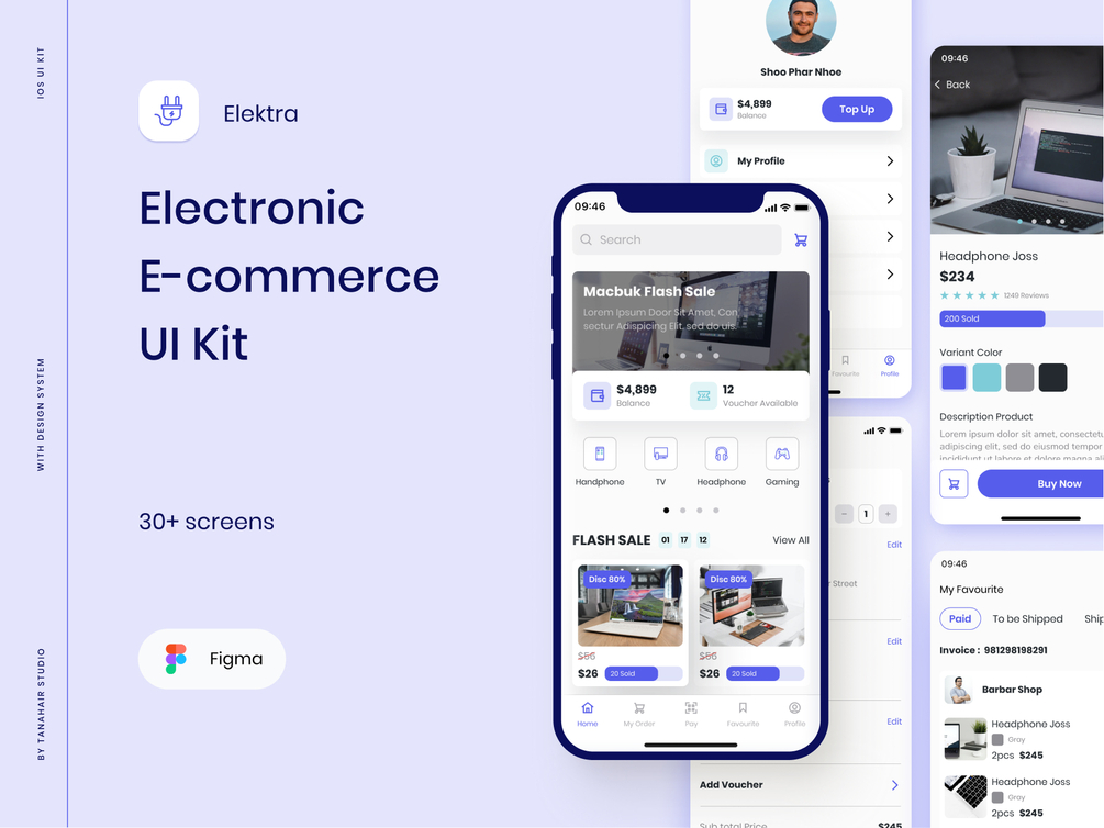 Elektra - Electronic E-commerce UI Kit is modernly crafted Figma wireframe template which can be used to kickstart your iOS E-commerce app project. Fasten your workflow when creating app designs with this UI Kit, no need to start from scratch! This template consists of and 30 design screens to make your workflow fast and seamless.