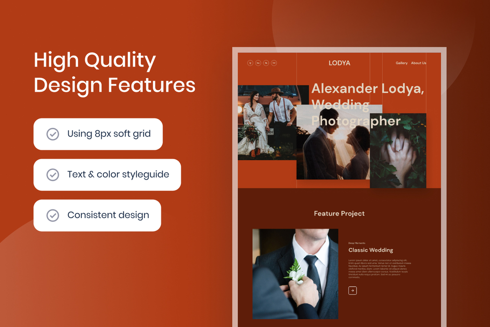 Photography Freelance Website Template is professionally designed for freelance photographers, wedding photographers, photo studios, photo hobbies, multi-purpose photography website.
