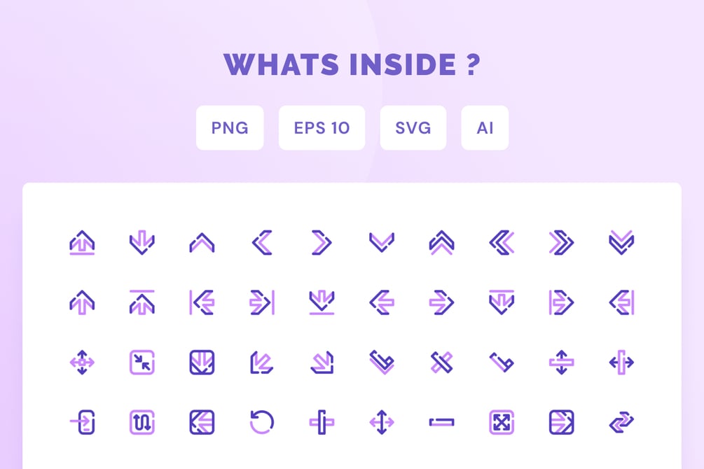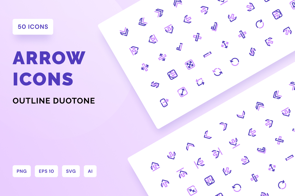 Arrow Outline Duotone Icon Set consist of 50 icons with 32x32 px grid.