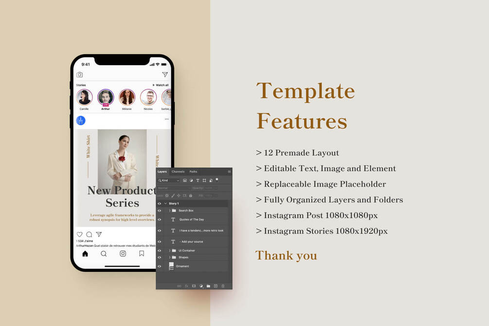 - 1 Figma file 1080x1080px templates for Instagram Post or Feed