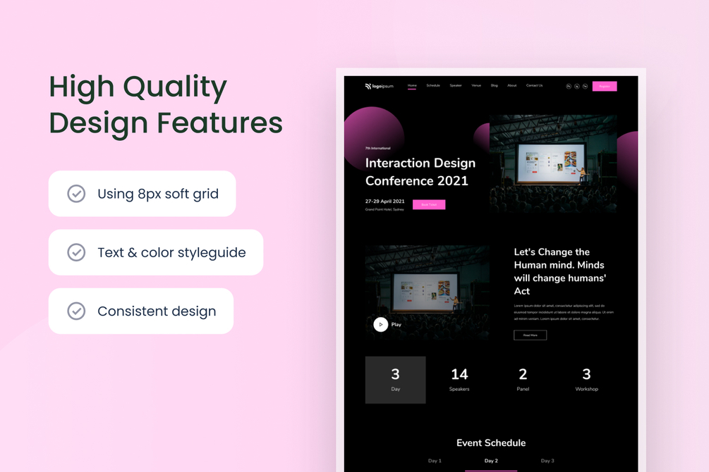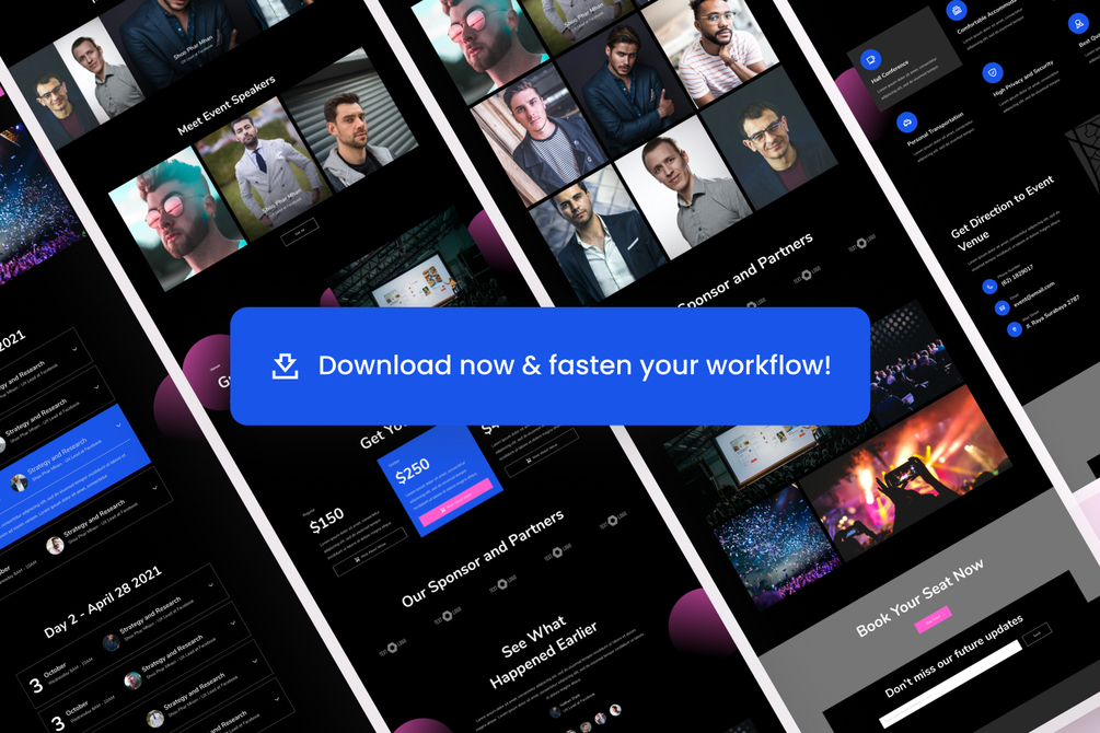 Event Conference Website Template is professionally designed for conference events, seminar, talks events, workshop events, multi-purpose event websites.